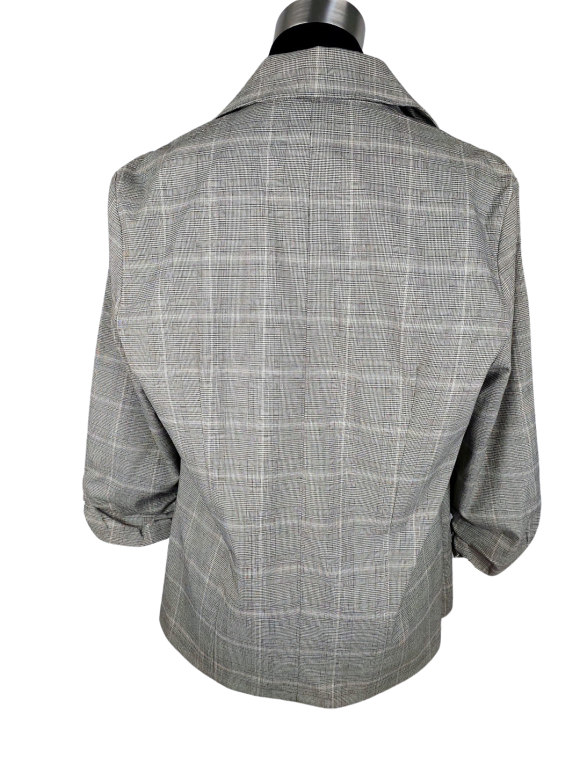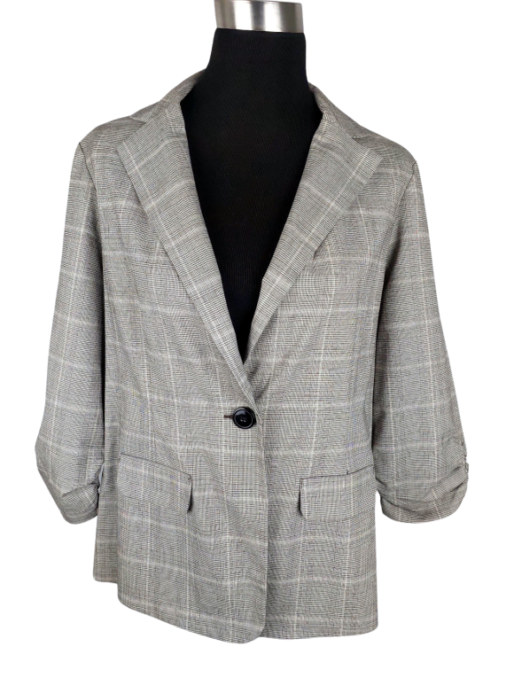 جاكيت بليزر - خط عنق شكل ـ V ـ ياقة ذات شق (Notched) كتف عادي أكمام طويلة عادية (Plain) - رمادي, L