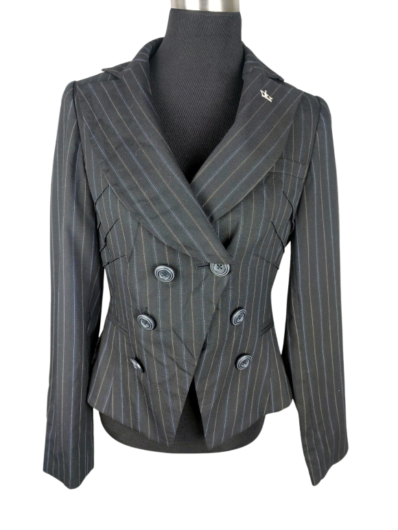 جاكيت بليزر - خط عنق شكل ـ V ـ ياقة ذات شق (Notched) كتف عادي أكمام طويلة عادية (Plain) - أسود, M