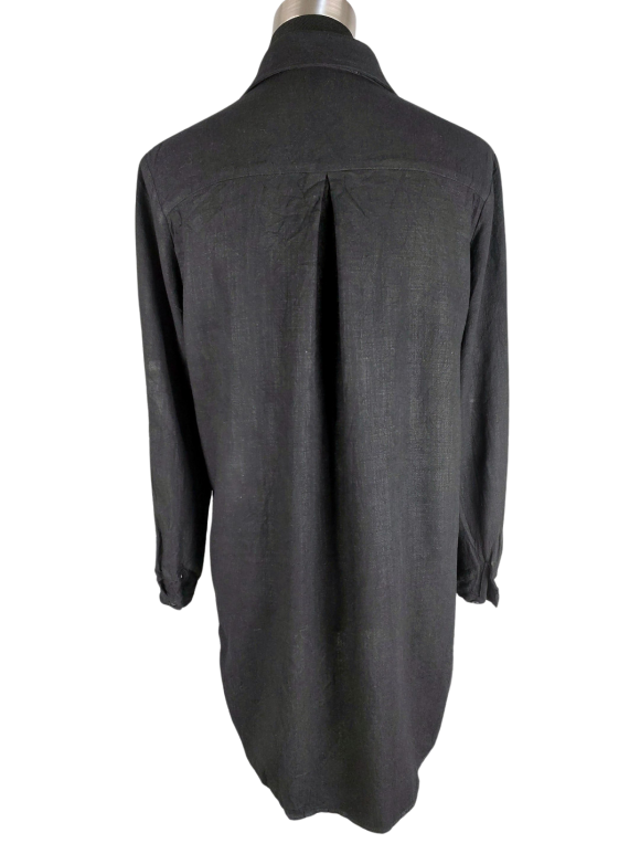 قميص - خط عنق شكل ـ V ـ ياقة كلاسيكية كتف عادي أكمام ثلاثة أرباع عادية (Plain) - أسود, L