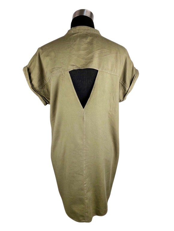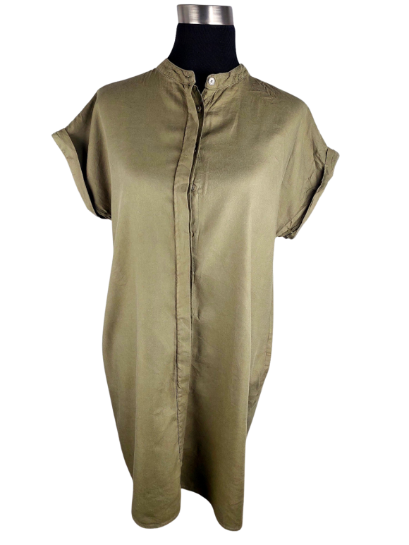 تونيك (Tunic) - خط عنق بياقة باند (Band) ياقة باند (Band) كتف عادي بدون أكمام - أخضر, L