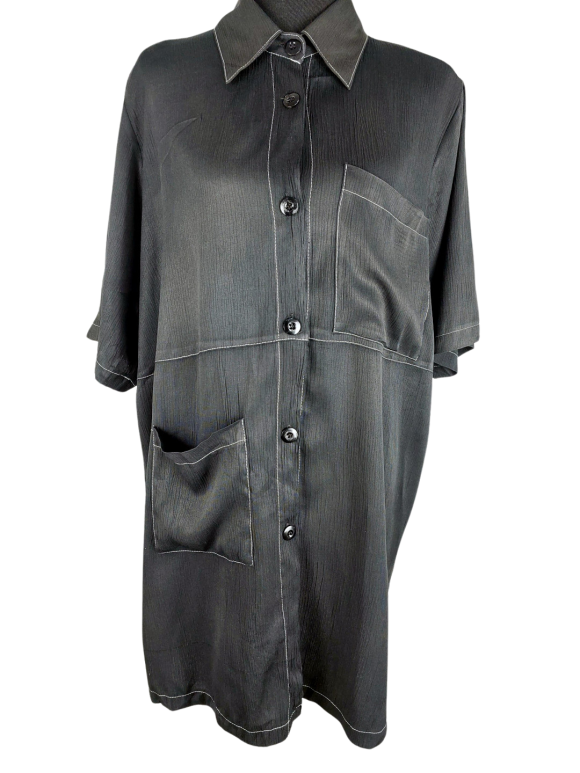 قميص - خط عنق دائري ياقة كلاسيكية كتف عادي أكمام قصيرة عادية (Plain) - أسود, أكثر من قياس