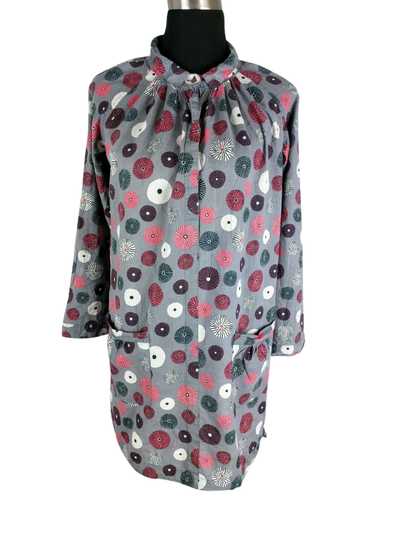 تونيك (Tunic) - خط عنق شكل ـ V ـ ياقة كلاسيكية كتف عادي أكمام طويلة عادية (Plain) - رمادي, مناسب لأكثر من قياس