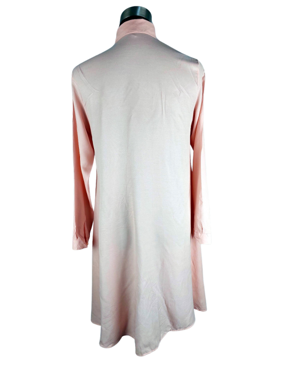 فستان تونيك (Tunic) - خط عنق شكل ـ V ـ ياقة كلاسيكية كتف عادي أكمام طويلة عادية (Plain) - زهري, M