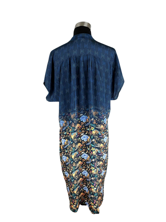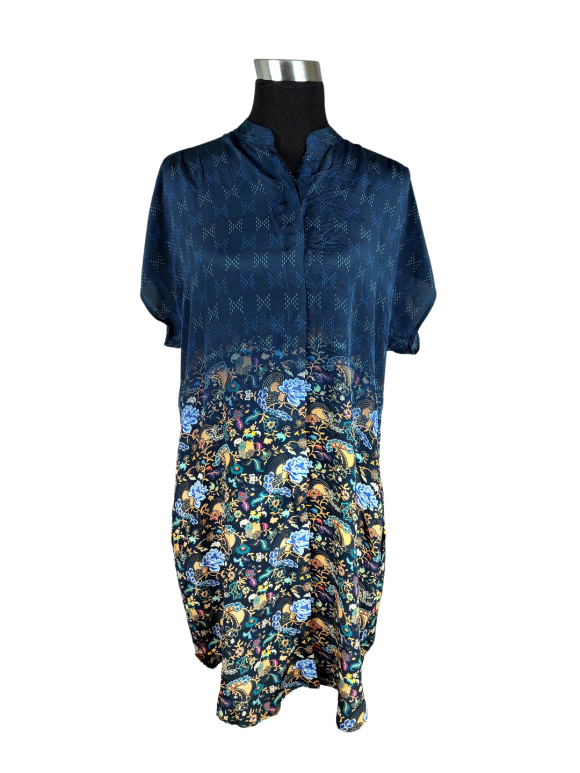فستان تونيك (Tunic) - خط عنق شكل ـ V ـ ياقة باند (Band) كتف عادي أكمام قصيرة عادية (Plain) - كحلي, L