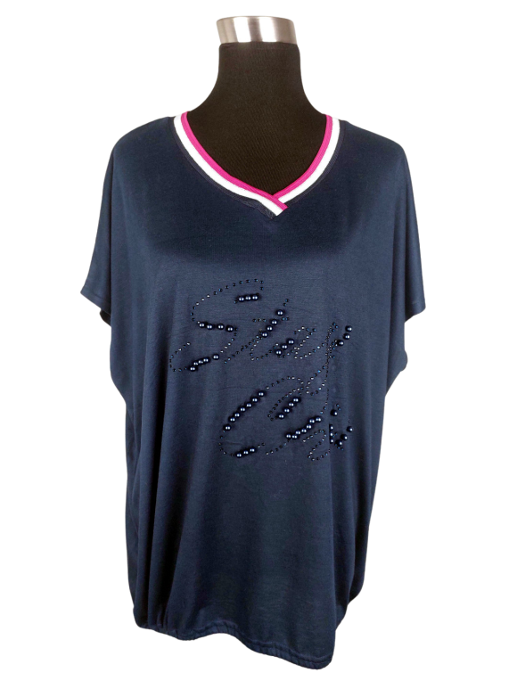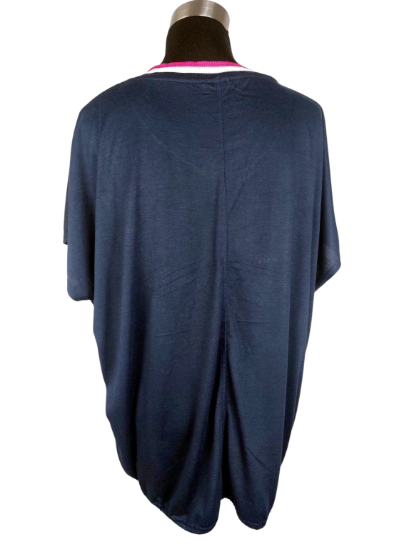 بلوزة - خط عنق شكل ـ V ـ بدون ياقة كتف عادي أكمام قصيرة بشكل جناح الخفاش (Batwing) - كحلي, مناسب لأكثر من قياس