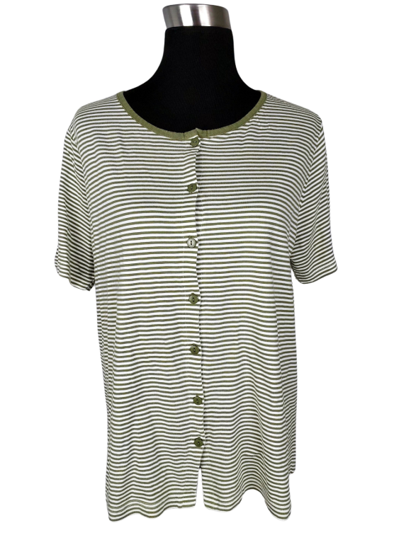 بلوزة - خط عنق دائري بدون ياقة كتف عادي أكمام قصيرة عادية (Plain) - أخضر, L