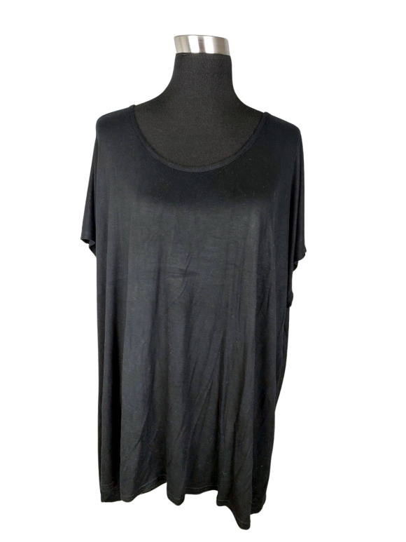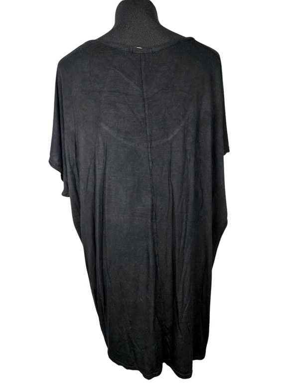 تيشيرت أوفرسايزد (Oversized) - خط عنق دائري بدون ياقة كتف عادي أكمام قصيرة بشكل جناح الخفاش (Batwing) - أسود, مناسب لأكثر من قياس