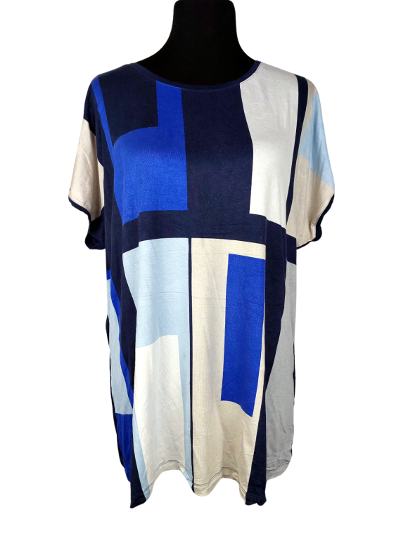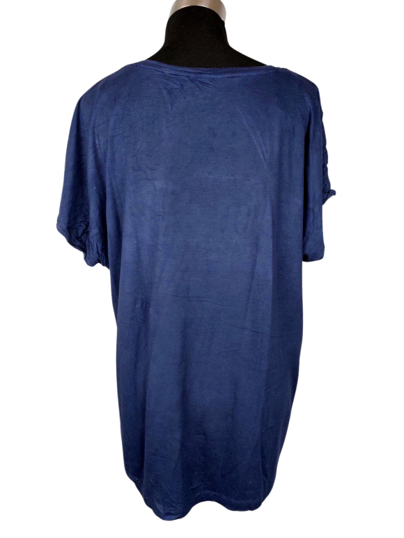 تونيك (Tunic) - خط عنق دائري بدون ياقة كتف عادي أكمام قصيرة عادية (Plain) - أزرق, XL