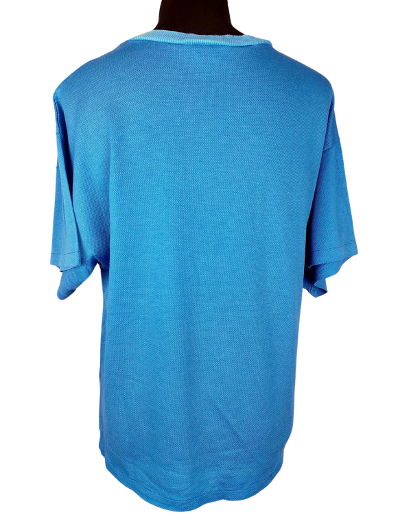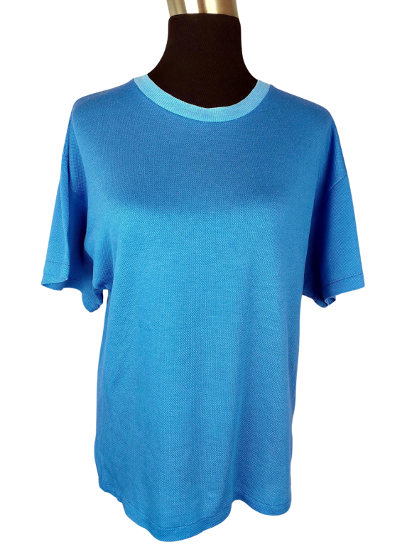 تيشيرت فضفاض (Relaxed) - خط عنق دائري بدون ياقة كتف عادي أكمام قصيرة عادية (Plain) - أزرق, L