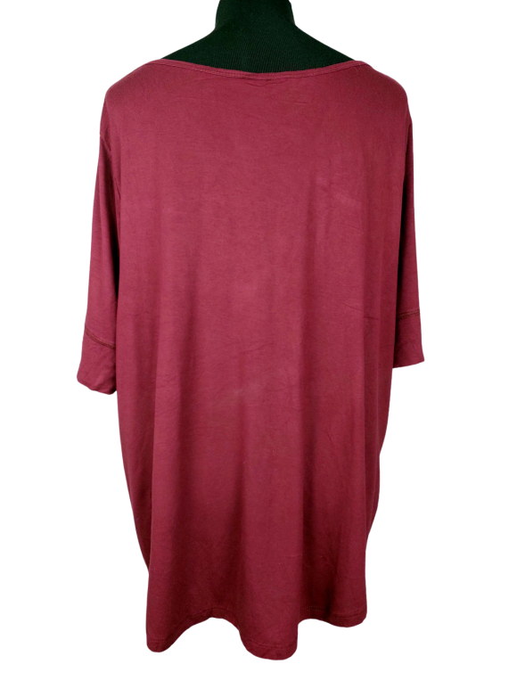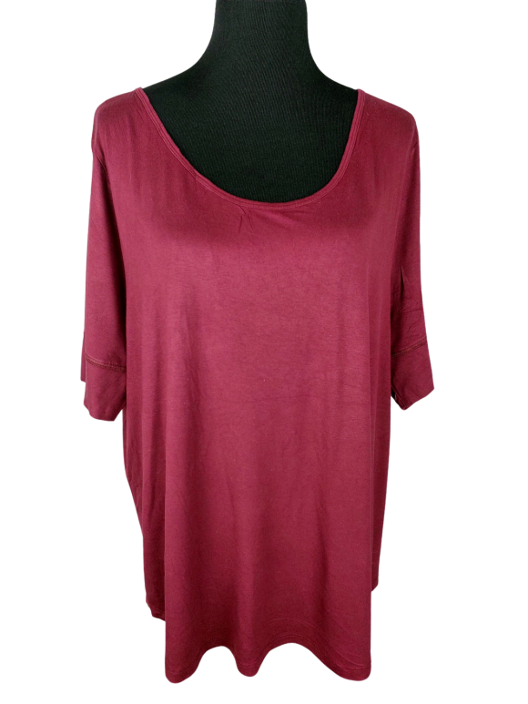 تونيك (Tunic) - خط عنق دائري بدون ياقة كتف عادي أكمام قصيرة عادية (Plain) - خمري, XXL