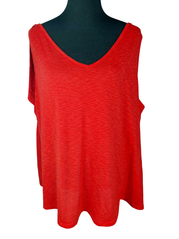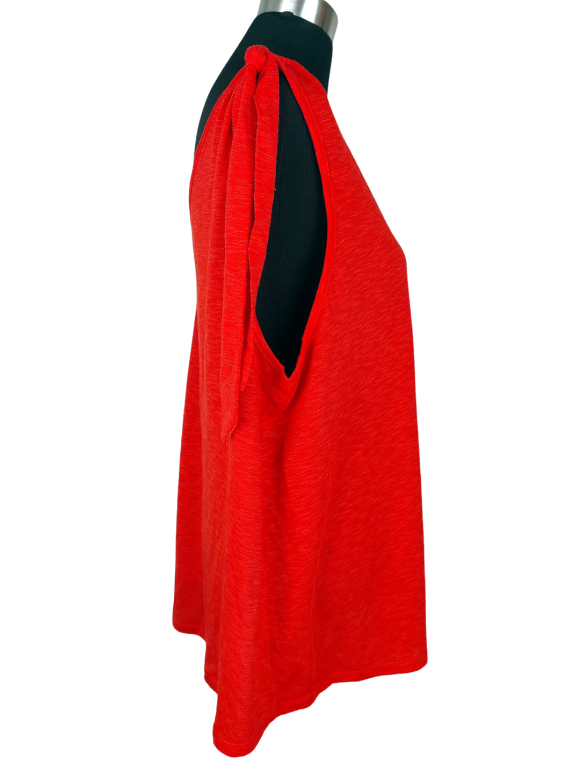 بلوزة - خط عنق شكل ـ V ـ بدون ياقة كتف من الحمّالات (Strap) بدون أكمام - أحمر, مناسب لأكثر من قياس