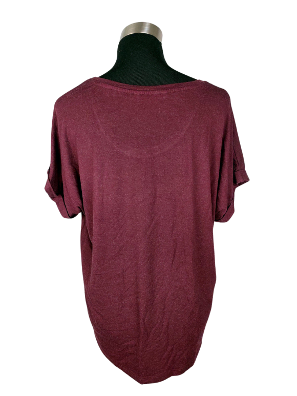 تيشيرت فضفاض (Relaxed) - خط عنق دائري بدون ياقة كتف عادي أكمام قصيرة عادية (Plain) - خمري, مناسب لأكثر من قياس