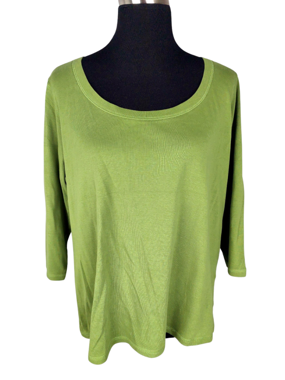 تيشيرت فضفاض (Relaxed) - خط عنق دائري طراز سكوب (Scoop) بدون ياقة كتف عادي أكمام طويلة عادية (Plain) - أخضر, XL