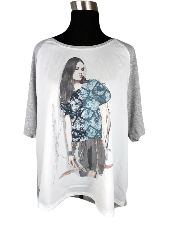 تيشيرت أوفرسايزد (Oversized) - خط عنق دائري بدون ياقة كتف عادي أكمام قصيرة عادية (Plain) - رمادي, XXL
