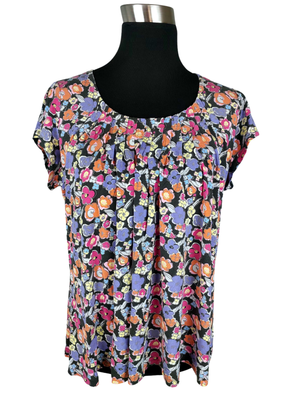 بلوزة - خط عنق دائري بدون ياقة كتف عادي أكمام قصيرة عادية (Plain) - بنفسجي, L