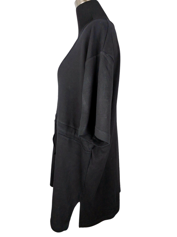 فستان بلوزون (Blouson) - خط عنق شكل ـ V ـ بدون ياقة كتف عادي أكمام قصيرة عادية (Plain) - أسود, 3XL