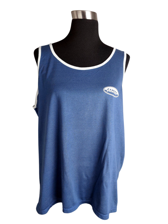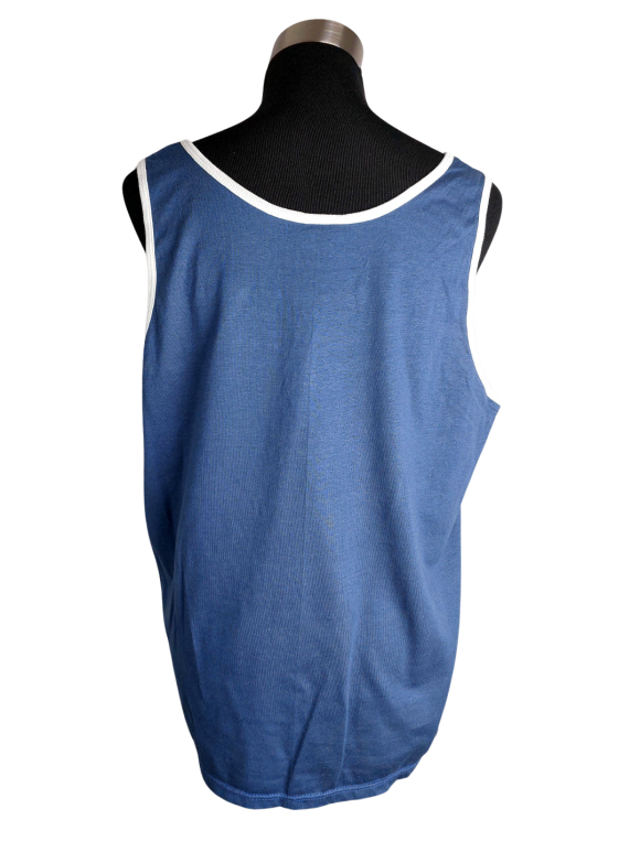 تيشيرت فضفاض (Relaxed) - خط عنق دائري بدون ياقة كتف من الحمّالات (Strap) بدون أكمام - أزرق, XL