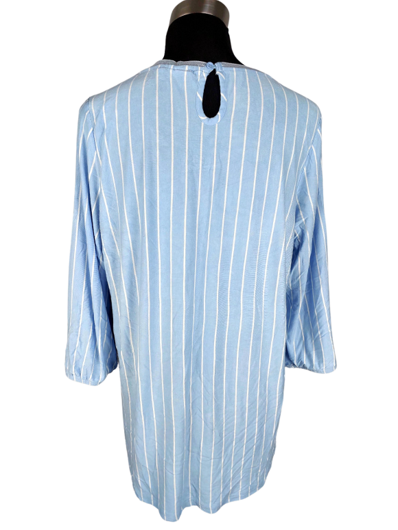 تيشيرت فضفاض (Relaxed) - خط عنق دائري بدون ياقة كتف عادي أكمام طويلة عادية (Plain) - أزرق, L
