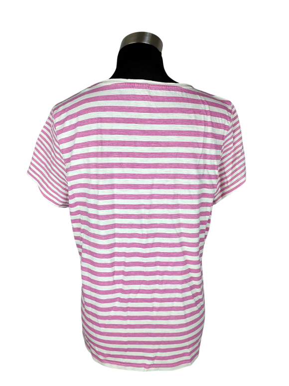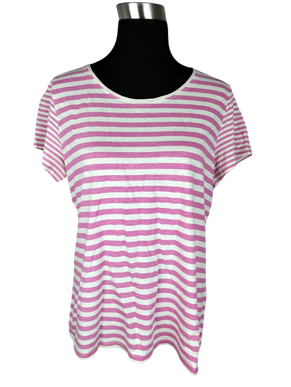 تيشيرت فضفاض (Relaxed) - خط عنق دائري بدون ياقة كتف عادي أكمام قصيرة عادية (Plain) - زهري, L