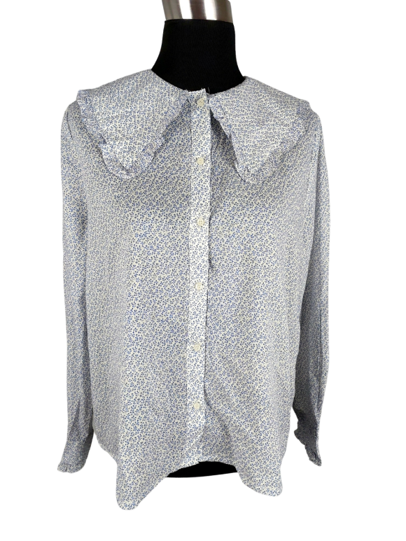 قميص نسائي, خط عنق بياقة تشيلسي (Chelsea), كتف عادي, أكمام طويلة, أكمام عادية (Plain) - أبيض, محيط الصدر 106سم