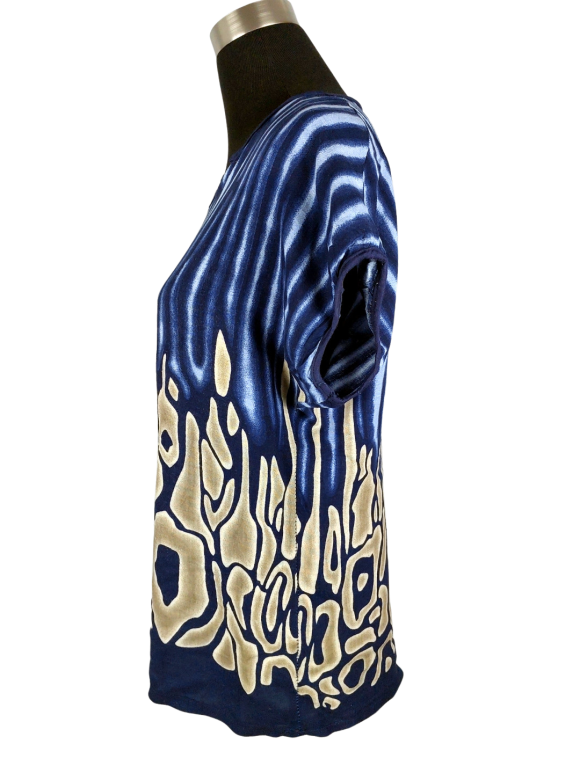 تيشيرت فضفاض (Relaxed) - خط عنق شكل ـ V ـ بدون ياقة كتف عادي أكمام قصيرة عادية (Plain) - أزرق, XL