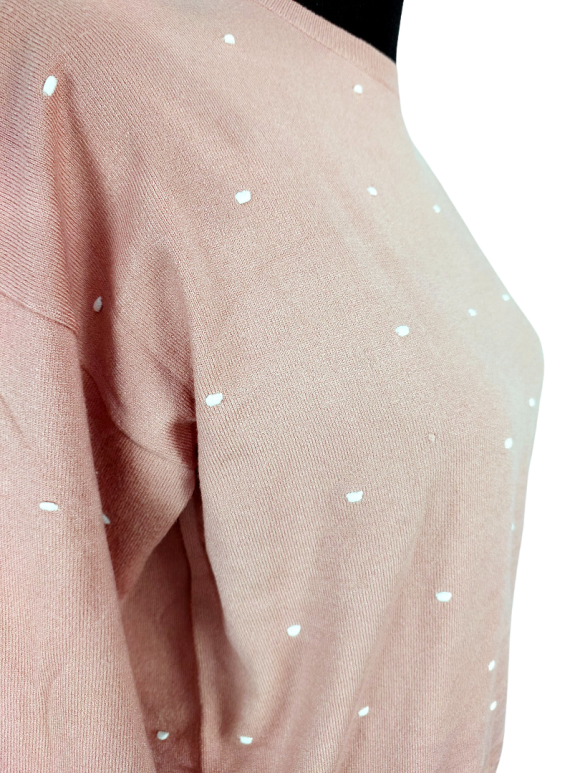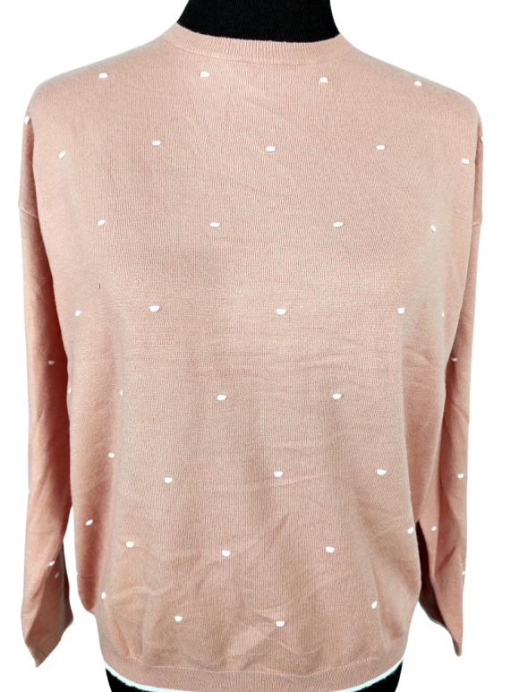 كنزة صوفية (Sweater) تلبس من فوق الرأس (Pullover) - خط عنق دائري، بدون ياقة، كتف عادي، أكمام طويلة عادية (Plain) - زهري, L