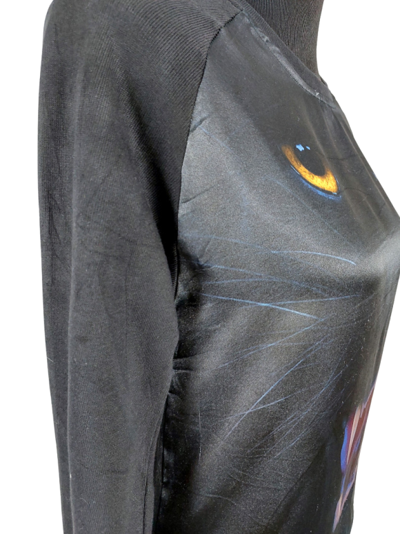 بلوزة - خط عنق دائري، بدون ياقة، كتف عادي، أكمام طويلة عادية (Plain) - أسود, M