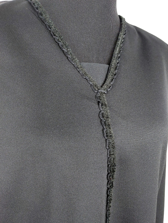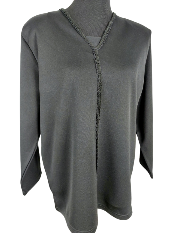 بلوزة - خط عنق شكل ـ V ـ، بدون ياقة، كتف عادي، أكمام طويلة عادية (Plain) - أسود, XL