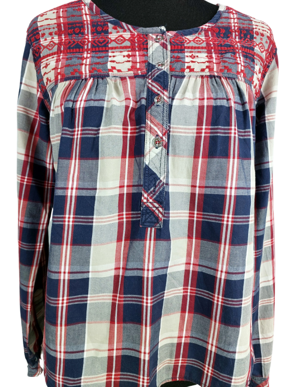 Blouse - Round neckline، No Collar، Regular shoulder، Long sleeve Plain - أزرق, M