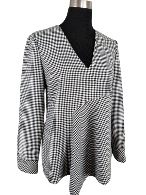بلوزة - خط عنق شكل ـ V ـ، بدون ياقة، كتف عادي، أكمام طويلة عادية (Plain) - أسود, M