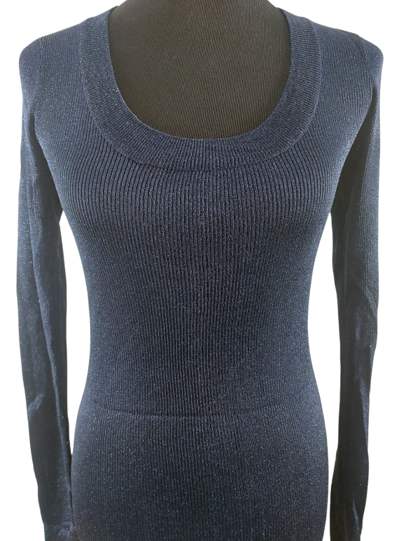 كنزة صوفية (Sweater) تلبس من فوق الرأس (Pullover) - خط عنق دائري، بدون ياقة، كتف عادي، أكمام طويلة عادية (Plain) - أزرق, S