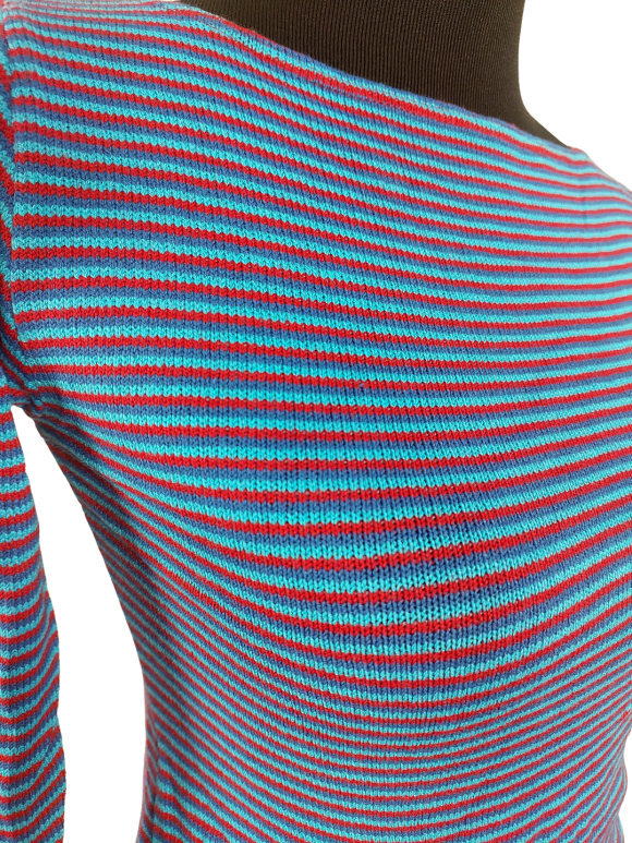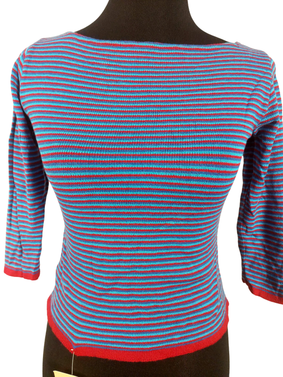كنزة صوفية (Sweater) تلبس من فوق الرأس (Pullover) - خط عنق على شكل قارب (Boat)، بدون ياقة، كتف عادي، أكمام حتى الكوع عادية (Plain) - أزرق, M