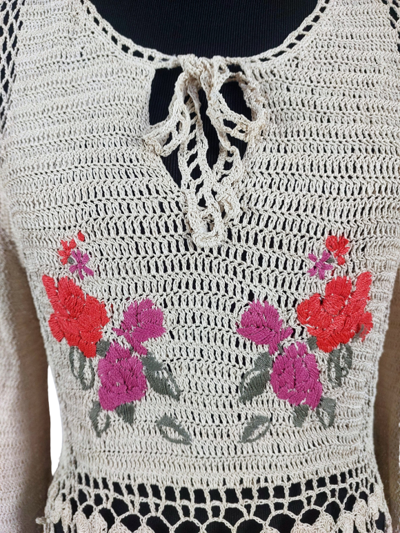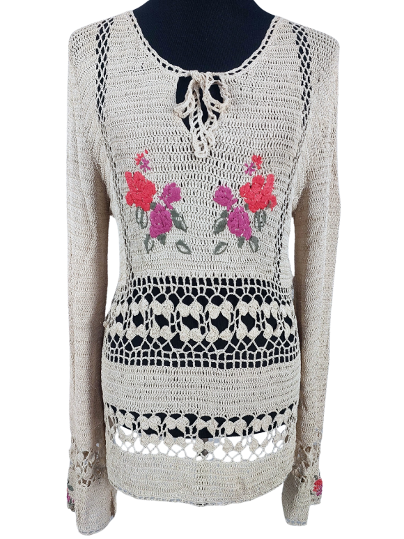 تونيك (Tunic) - خط عنق على شكل قارب (Boat)، بدون ياقة، كتف عادي، أكمام طويلة عادية (Plain) - بني فاتح, L