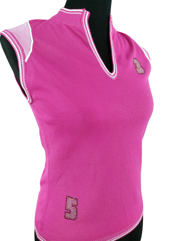 كنزة صوفية (Sweater) تلبس من فوق الرأس (Pullover) - خط عنق شكل ـ V ـ، بدون ياقة، كتف عادي، بدون أكمام - زهري, S