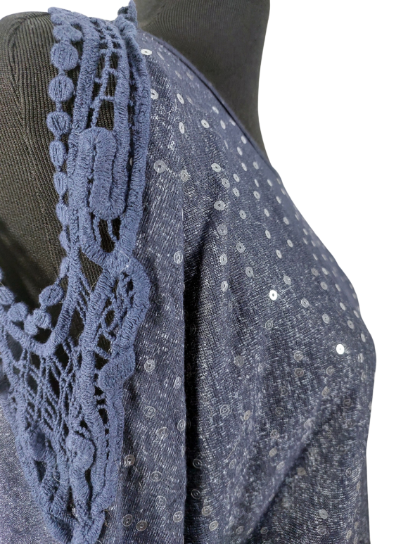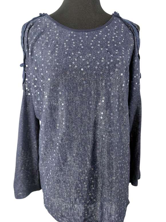 كنزة صوفية (Sweater) تلبس من فوق الرأس (Pullover) - خط عنق دائري، بدون ياقة، كتف من الحمّالات (Strap)، أكمام طويلة عادية (Plain) - كحلي, L