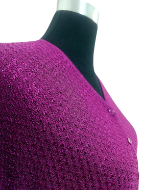 كارديجان - خط عنق شكل ـ V ـ، بدون ياقة، كتف عادي، أكمام قصيرة بشكل جناح الخفاش (Batwing) - فوشي (زهري غامق), مناسب لأكثر من قياس