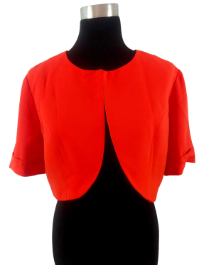 جاكيت بليزر - خط عنق دائري، بدون ياقة، كتف عادي، أكمام قصيرة عادية (Plain) - أحمر, XL