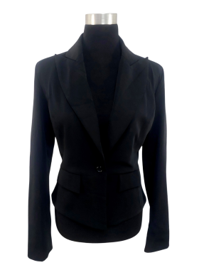 جاكيت بليزر - خط عنق دائري، بدون ياقة، كتف عادي، أكمام طويلة عادية (Plain) - أسود, S/M