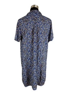 فستان تونيك (Tunic) - خط عنق شكل ـ V ـ ياقة كلاسيكية كتف عادي أكمام قصيرة عادية (Plain) - أزرق, XL