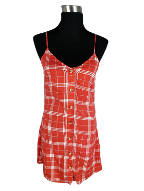 فستان بلوزون (Blouson) - خط عنق على شكل قلب (Sweetheart) بدون ياقة كتف بحمالة رفيعة جدا (Spaghetti) بدون أكمام - أحمر, S
