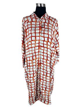 فستان تونيك (Tunic) - خط عنق شكل ـ V ـ ياقة كلاسيكية كتف عادي أكمام طويلة عادية (Plain) - أبيض, مناسب لأكثر من قياس
