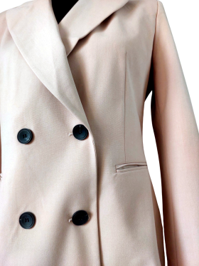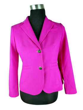 جاكيت بليزر - خط عنق شكل ـ V ـ ياقة ذات شق (Notched) كتف عادي أكمام طويلة عادية (Plain) - زهري, S