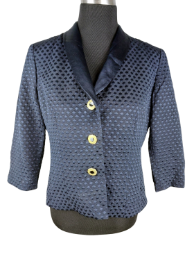 جاكيت بليزر - خط عنق شكل ـ V ـ، بياقة، كتف عادي، أكمام طويلة عادية (Plain) - كحلي, M