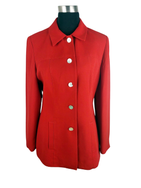 جاكيت بليزر - خط عنق شكل ـ V ـ ياقة كلاسيكية كتف عادي أكمام طويلة عادية (Plain) - أحمر, M