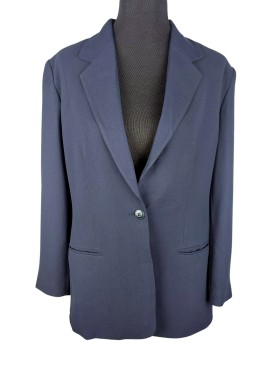 جاكيت بليزر - خط عنق شكل ـ V ـ بياقة كتف عادي أكمام طويلة عادية (Plain) - كحلي, L
