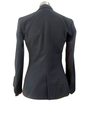 جاكيت بليزر - خط عنق شكل ـ V ـ ياقة ذات شق (Notched) كتف عادي أكمام طويلة عادية (Plain) - أسود, S