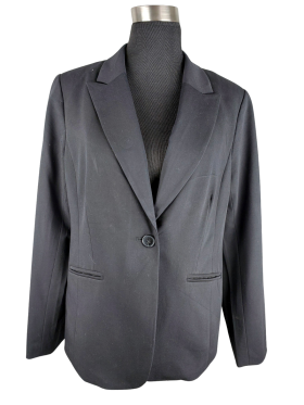 جاكيت بليزر - خط عنق شكل ـ V ـ ياقة ذات شق (Notched) كتف عادي أكمام طويلة عادية (Plain) - أسود, L
