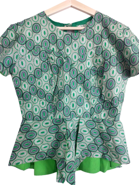 بلوزة - خط عنق دائري، بدون ياقة، كتف عادي، أكمام قصيرة بشكل منتفخ (Puff) - أخضر, S