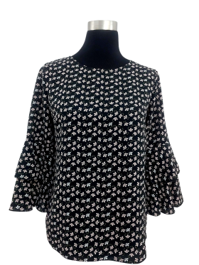 Blouse - Round neckline، No Collar، Regular shoulder، Long sleeve Bell - أسود, S/M