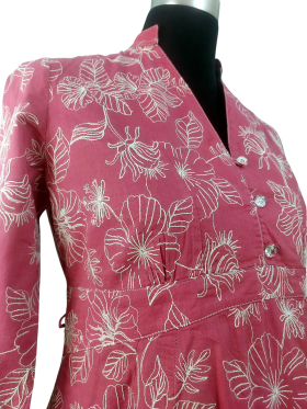 بلوزة - خط عنق شكل ـ V ـ، بدون ياقة، كتف عادي، أكمام طويلة عادية (Plain) - زهري, M